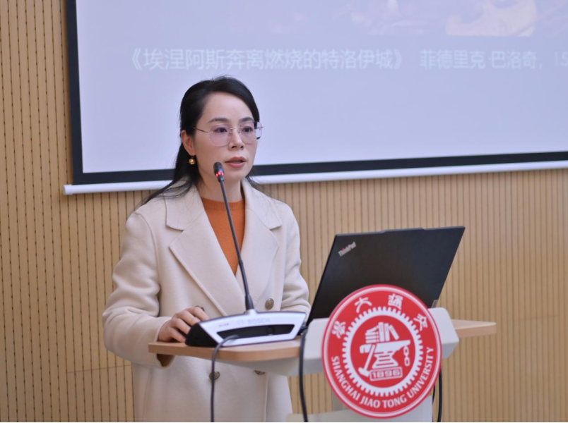 太阳成集团tyc9728长聘教轨副教授丁瑶的发言聚焦昆图斯的《特洛伊史诗》,着重观照了该部作品对希腊文化的继承与重构,及其对罗马社会思想的影响。她指出,世俗化的英雄主义或去极端化的情感表达,在一定程度上反映了作家渴求多元、融合和稳定的帝国文化环境, 继而被视为后古典主义文学的典型特征。
